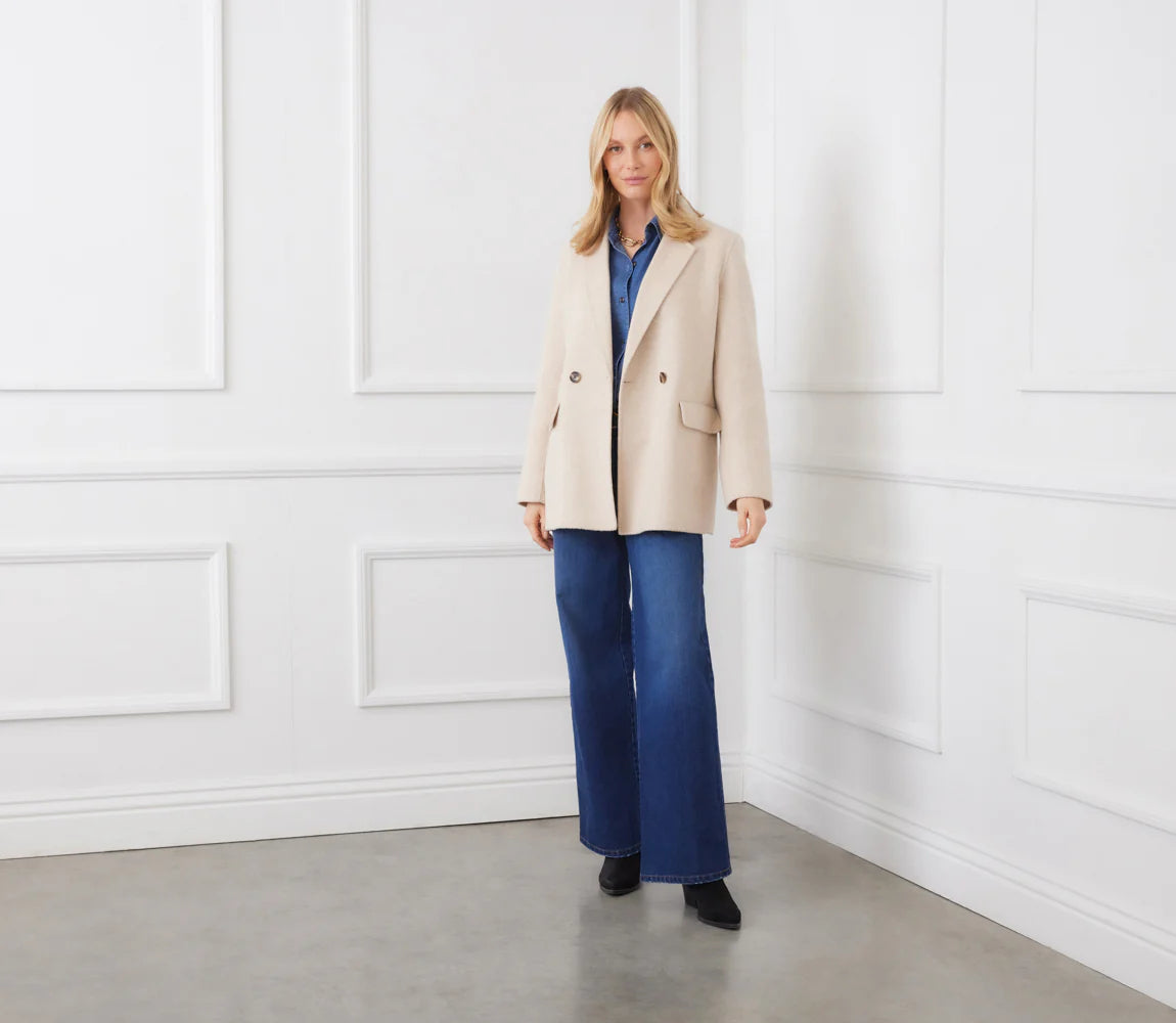 Style tip: Pair Bellamy with a fitted turtleneck and wide-leg trousers for a sleek, city-ready look. Or soften it with a silk midi dress and suede boots for effortless elegance. Oatmeal layers beautifully with camel, blush, or slate gray—your go-to neutral for fall.