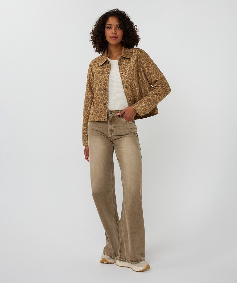 Unleash your wild side with the EsQualo Liselotte Leopard Jacket in Golden Olive. This standout piece features a bold leopard print in rich golden olive tones, blending fierce fashion with everyday wearability. Designed with a round neckline, long sleeves, and functional pockets, it offers a flattering silhouette with a touch of edge. Whether layered over basics or styled as a statement piece, this jacket brings instant attitude to your wardrobe.