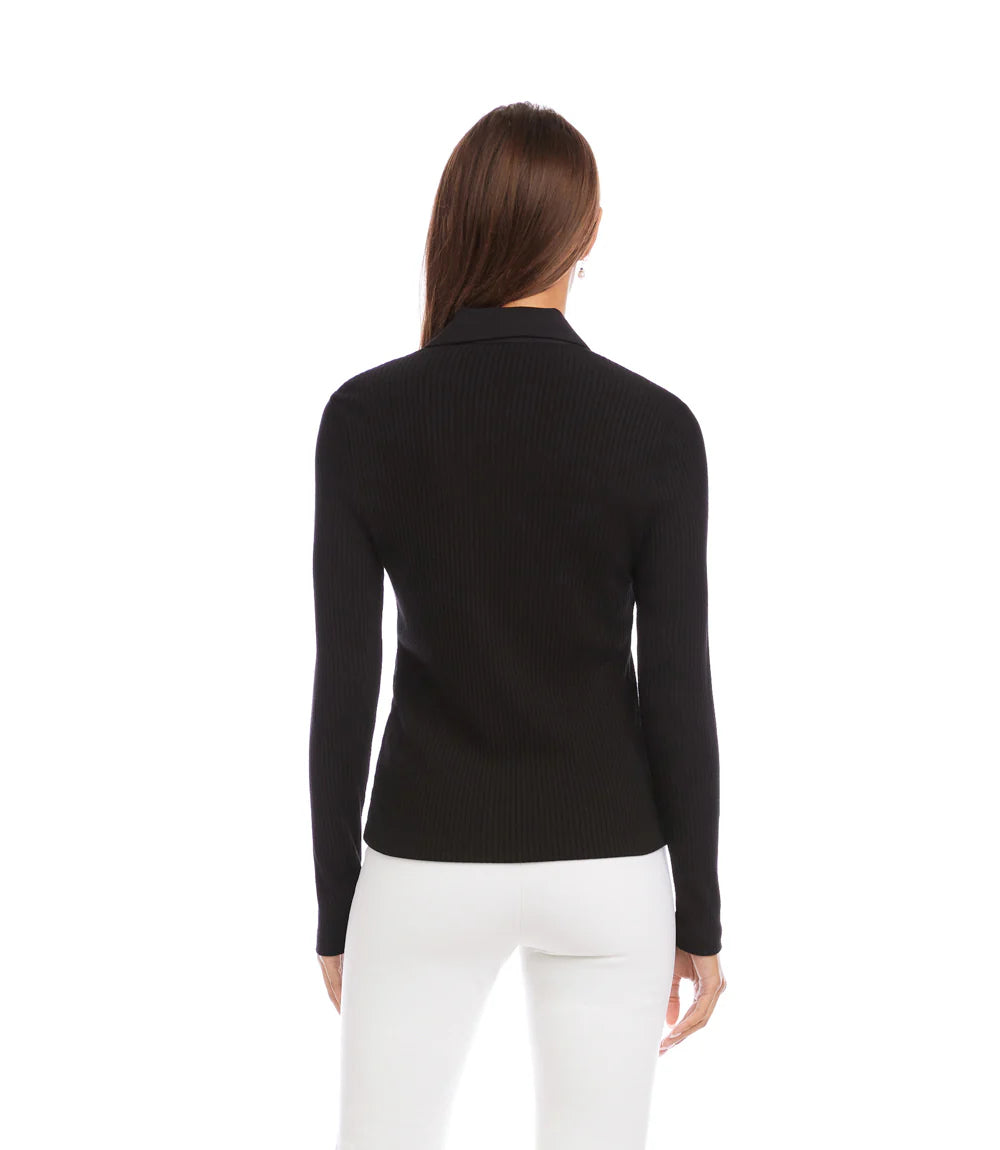 A soft, wide‑rib knit top with a flattering white button‑front silhouette, the Karen Kane Ribbed Long Sleeve Top in Black brings effortless polish to everyday dressing. Its smooth stretch fabric and clean lines create a sleek, body‑skimming fit that layers beautifully and transitions seamlessly from casual to elevated looks.