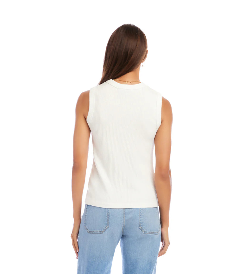 A soft, wide‑rib knit tank designed for effortless layering and everyday polish. The Karen Kane Ribbed Tank in Off-White offers a smooth, body‑skimming fit with comfortable stretch, making it a timeless essential for year‑round styling. Wear it solo for a clean, minimal look or layer it under cardigans, jackets, and blazers for elevated versatility.