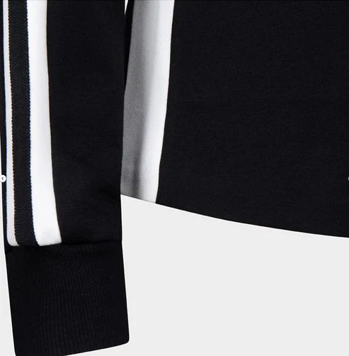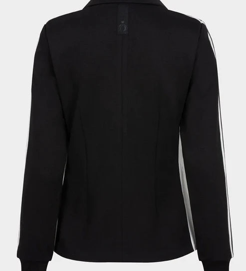 The Berglisa Blazer Punto Stripes by EsQualo blends sporty edge with tailored polish. Designed in a structured ponte knit, it features bold black and off-white stripes down the sleeves and down the sides for a modern twist on classic suiting. The notched lapel and two-button closure keep it refined, while the stretch fabric ensures comfort from day to night.