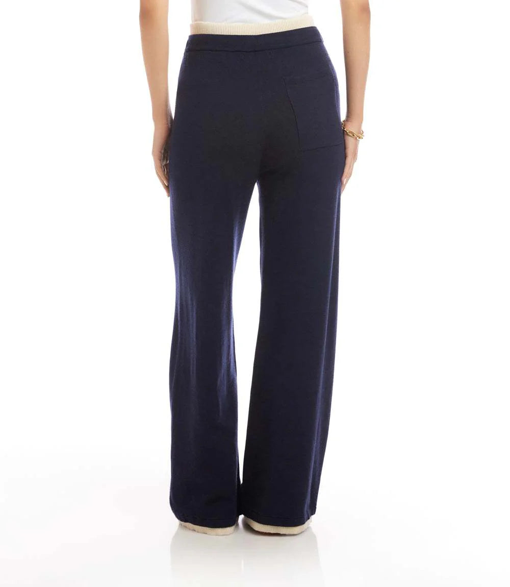 Style Tip: Pair these wide‑leg sweater pants with a fitted knit, crisp button‑down, or the coordinating Karen Kane top- Cleo Contrast Crewneck Sweater in Navy and Cream, for a chic, monochromatic look. Finish with sneakers for daytime ease or elevate with a sleek boot for a more refined feel.
