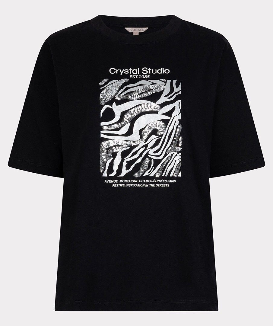 Carina Crystal Studio T-Shirt in Black - EsQualo W2505715
