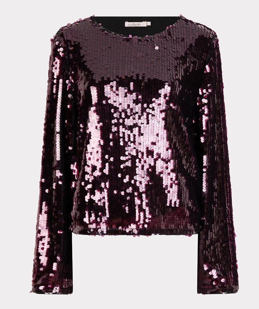 Fylla Flared Sleeve Sequin Top in Maroon - EsQualo W2508710