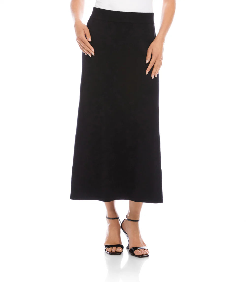 This sleek sweater‑knit midi skirt from Karen Kane delivers effortless sophistication with its smooth silhouette and comfortable stretch. The timeless black hue makes it a versatile wardrobe staple, perfect for pairing with cozy knits or polished blouses. A refined, easy‑to‑style piece that moves beautifully through every season.