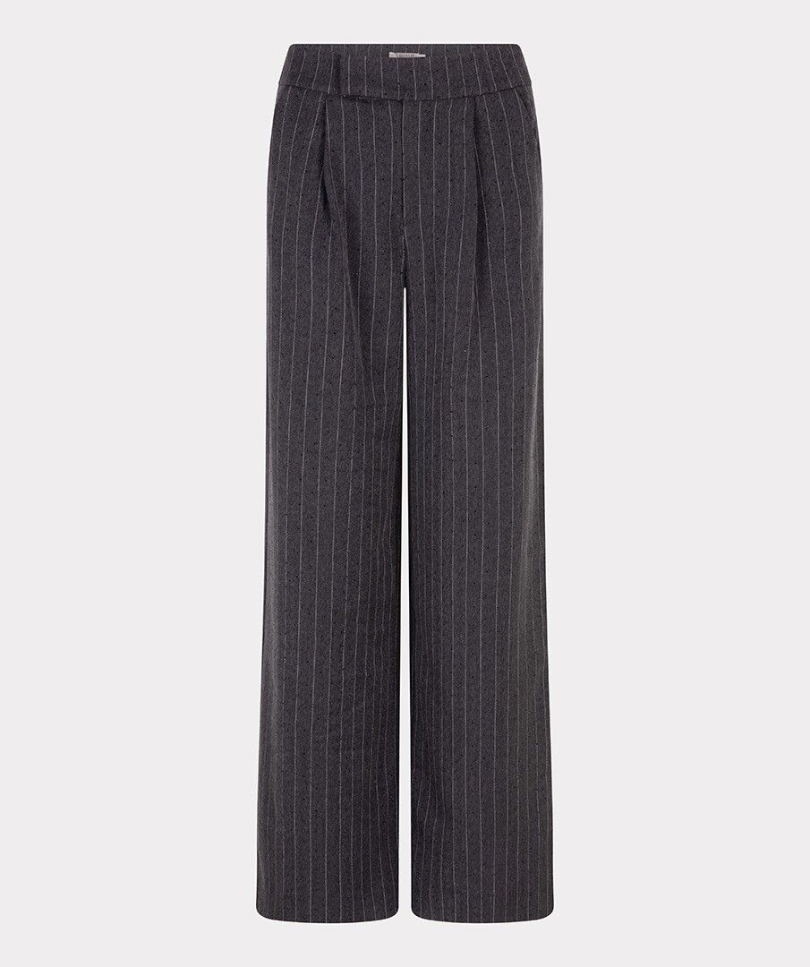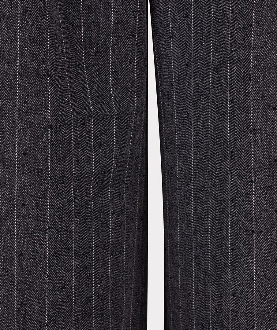 The EsQualo Tessan Trousers are a bold blend of structure and sparkle. These wide-leg trousers feature classic pinstripes elevated by glittering rhinestone accents, adding just the right amount of shimmer to your fall wardrobe. Designed in a rich dark grey melange, the high-waisted silhouette elongates the leg while offering a tailored yet relaxed fit. Whether styled for the office or a night out, these trousers deliver statement-making sophistication.