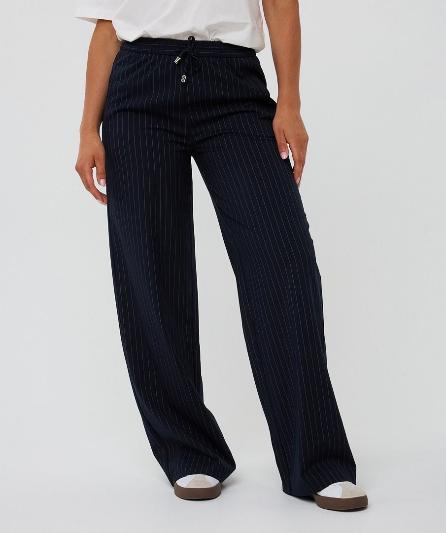 Tailored with a modern ease, the Tirza Trousers blend classic pinstripes with a soft drawstring waist for a refined yet relaxed silhouette. Lightweight and polished, they move effortlessly from desk to dinner.