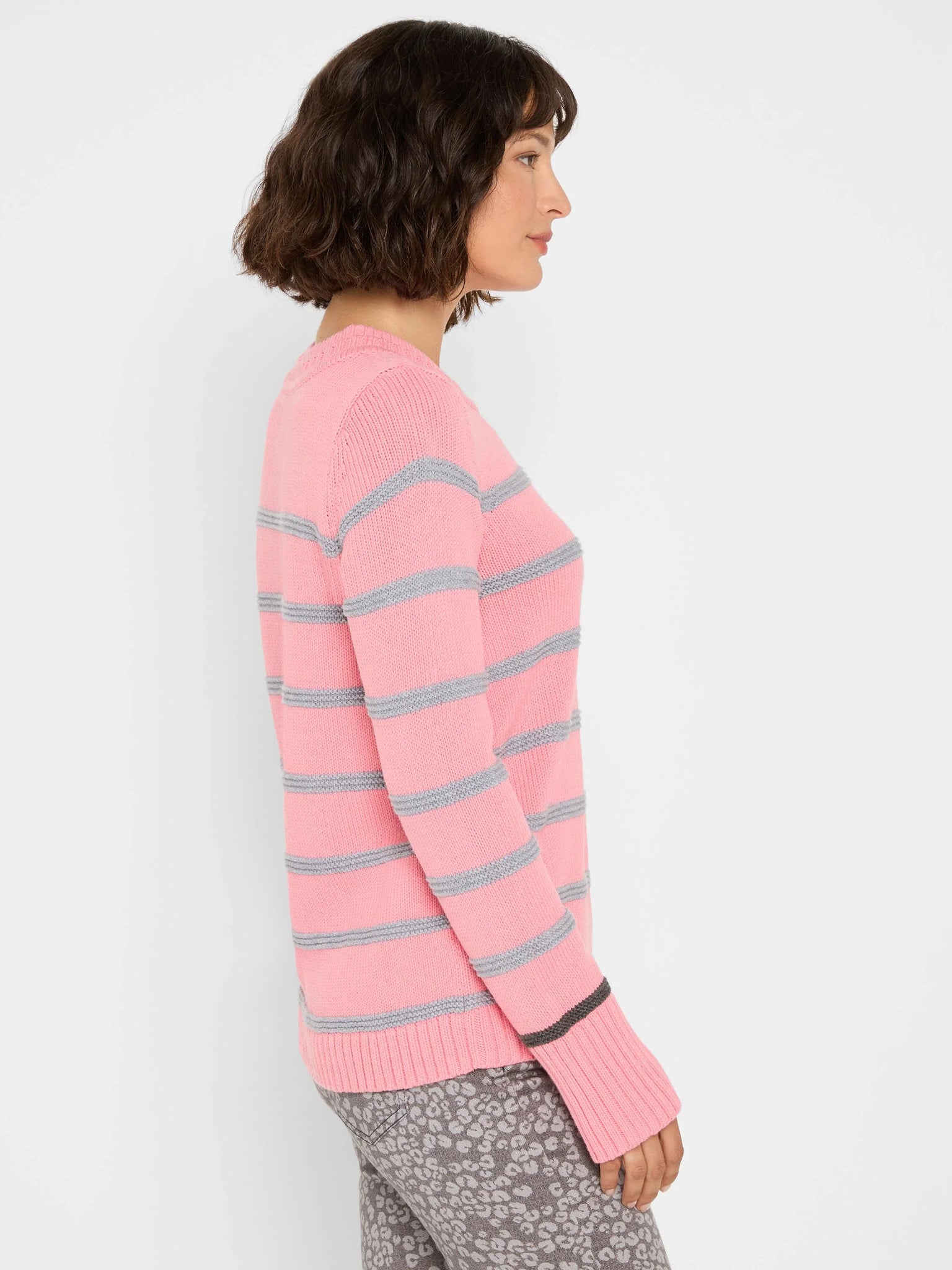Our Genna is your “when in doubt” go-to—effortless, familiar, and quietly refined. At first glance, it’s a timeless stripe sweater in cozy plied cotton. But look closer: ribbed cuffs and hem, a subtly reimagined crewneck, and a built-up neckline crafted with three distinct knit techniques. It’s those elevated details that transform comfort into polish, making this piece as ready for Monday meetings as it is for Sunday errands.