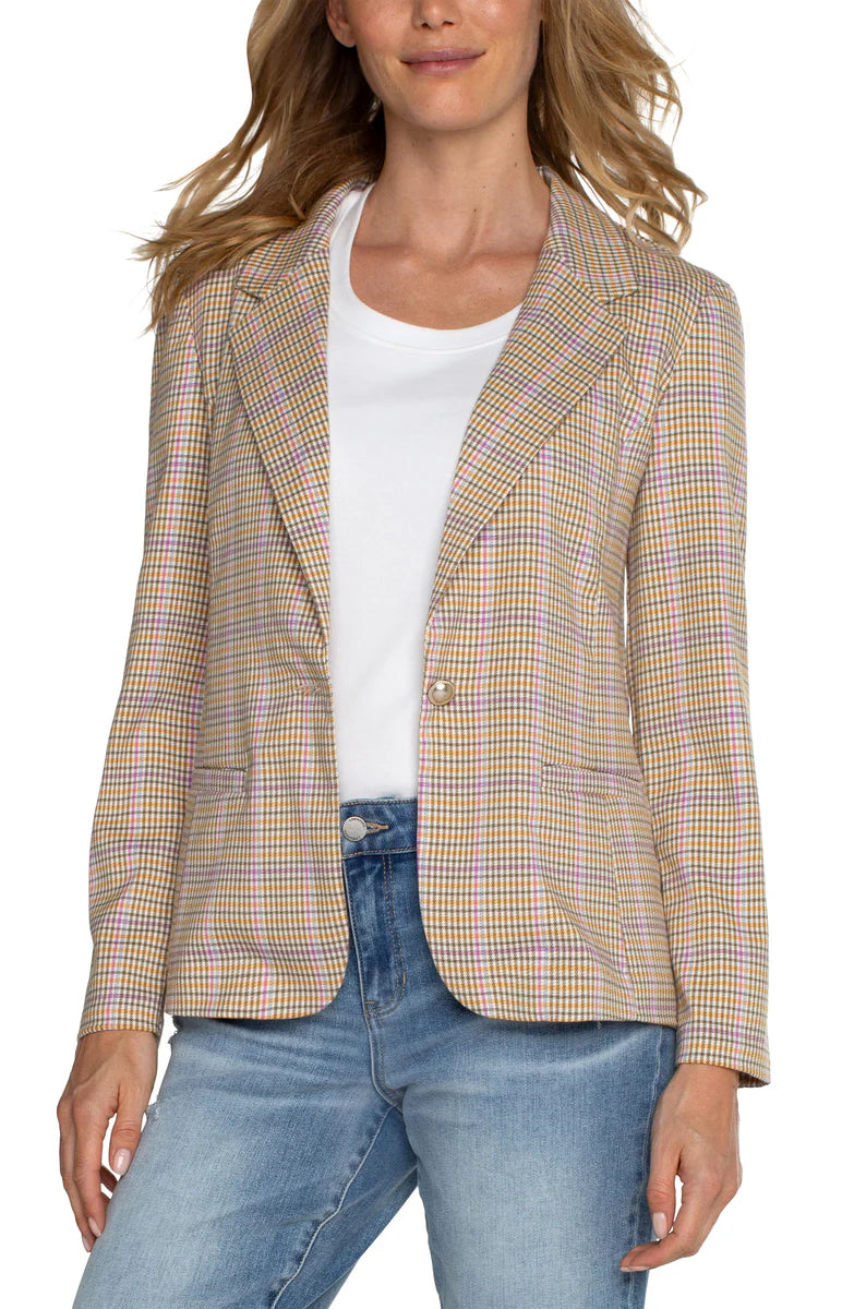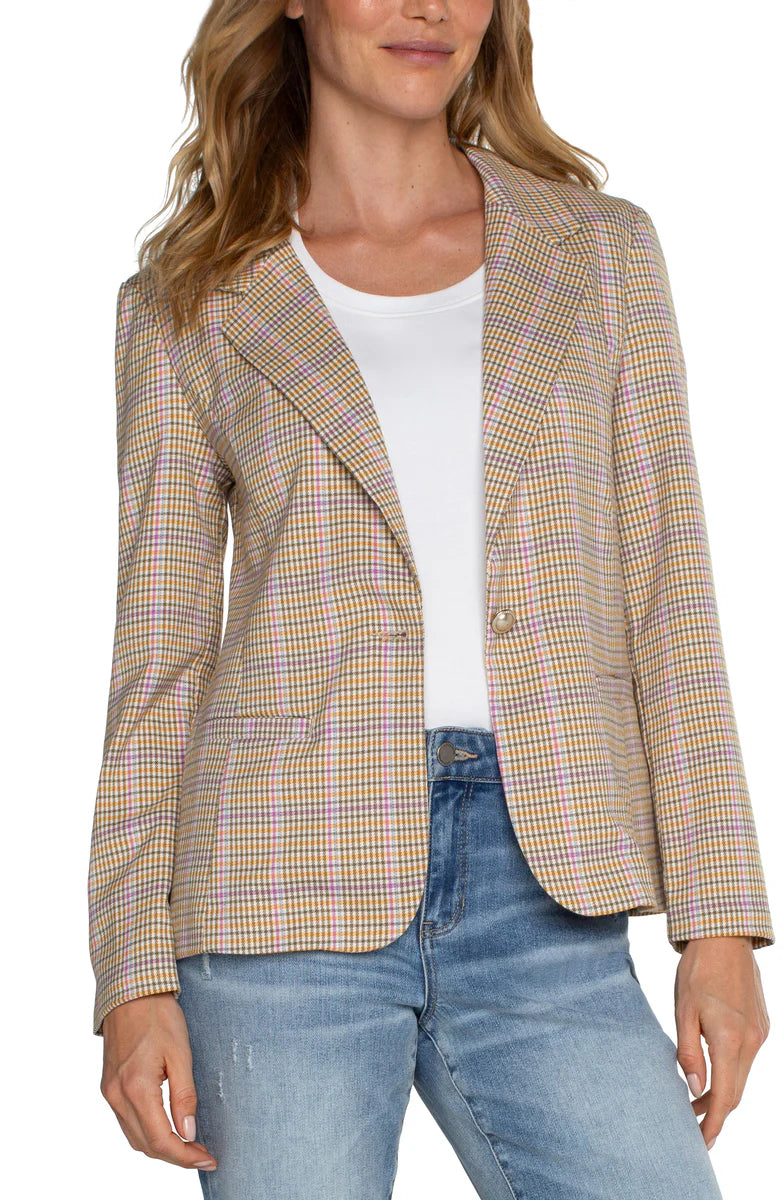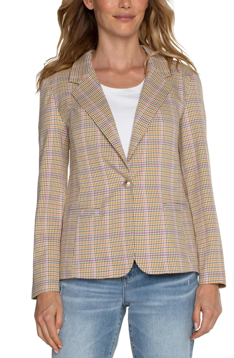 Experience the effortless elegance of our "Wear With Everything Blazer," featuring a stunning tan and orange checked print. With its perfectly tailored fit and striking single-button closure, this blazer exudes confidence and style. Perfect for any occasion, you'll always look your best in this versatile piece.